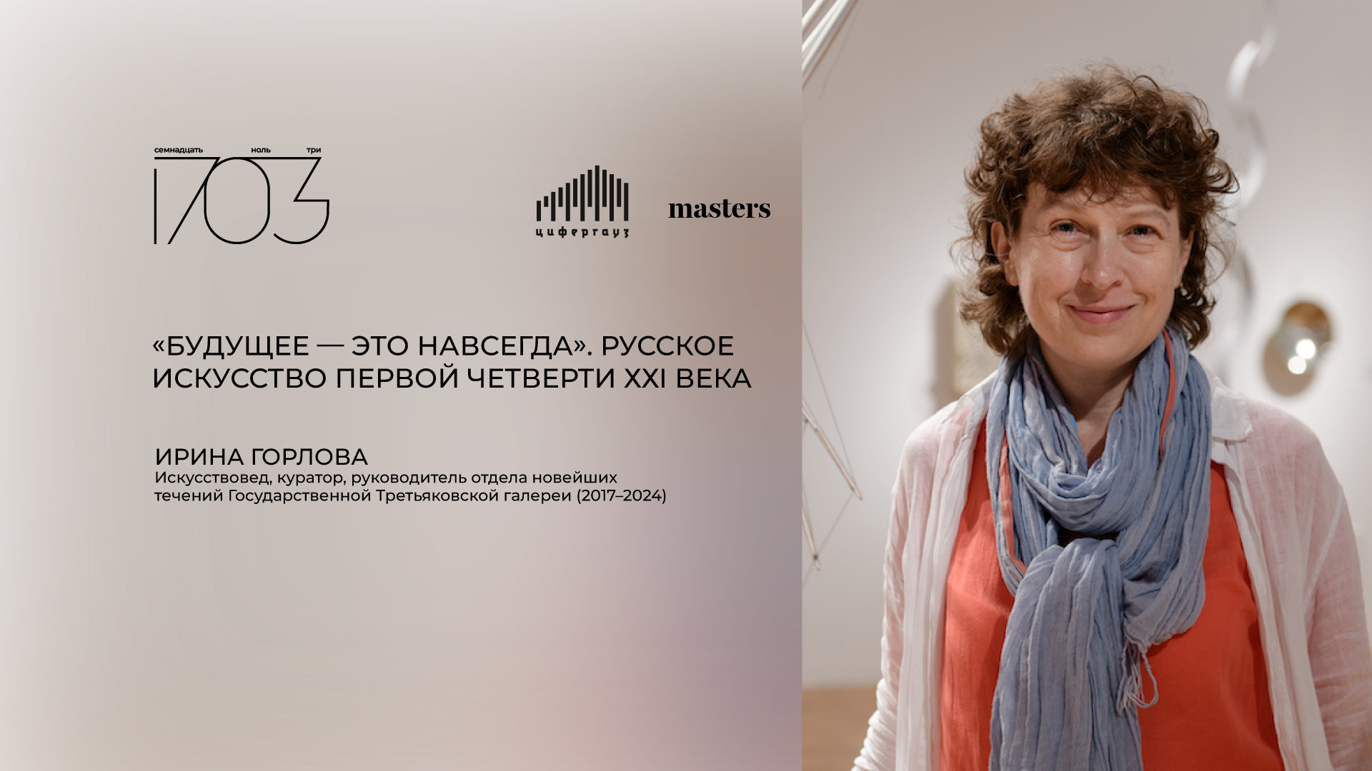 Приглашаем на новое событие годовой программы лектория ярмарки 1703. Ждем вас 25 февраля в галерее «Цифергауз» на лекции Ирины Горловой «“Будущее — это навсегда”. Русское искусство первой четверти ХХI века».